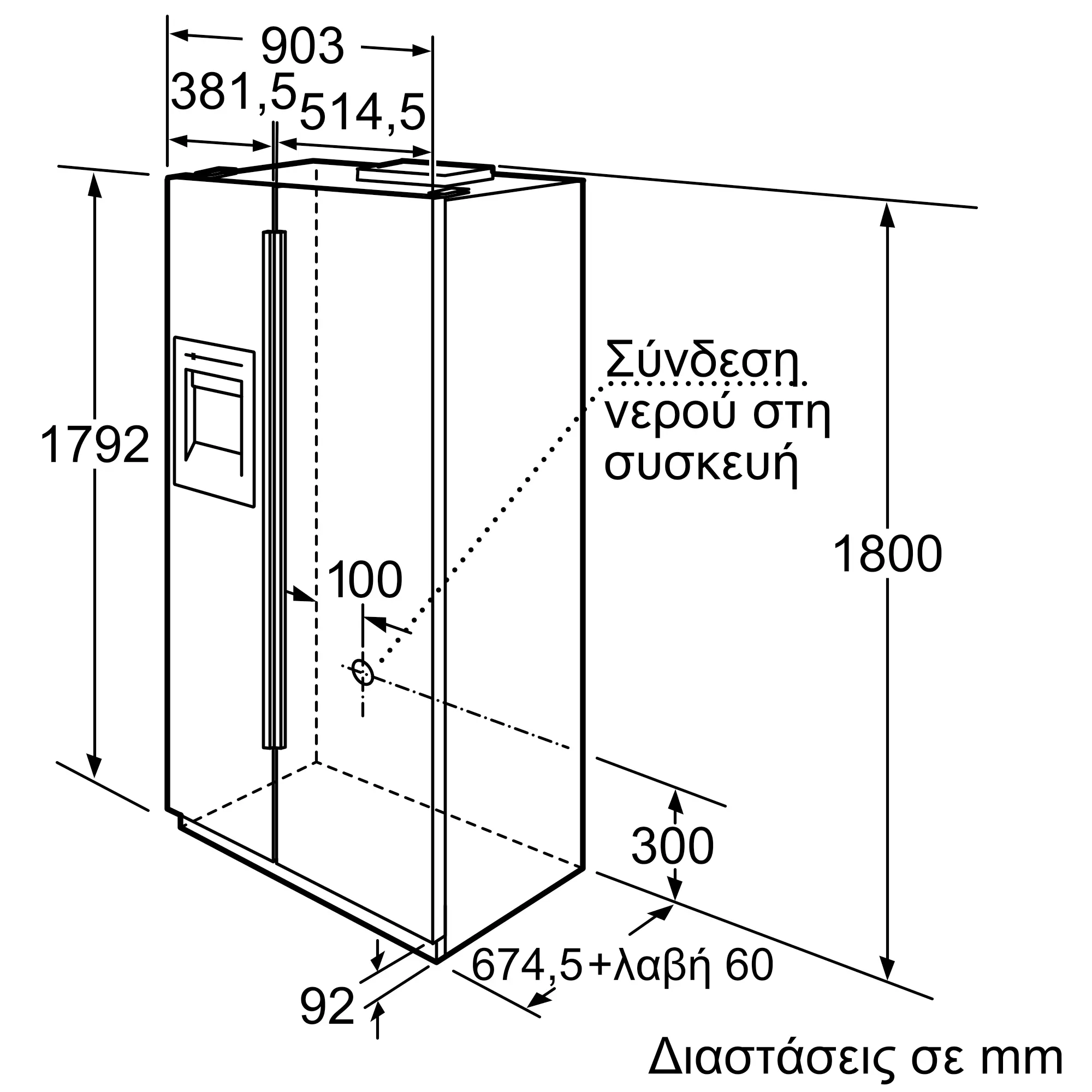 Διαστάσεις Εσωτερικής μονάδας: (ΥxΠxΒ)