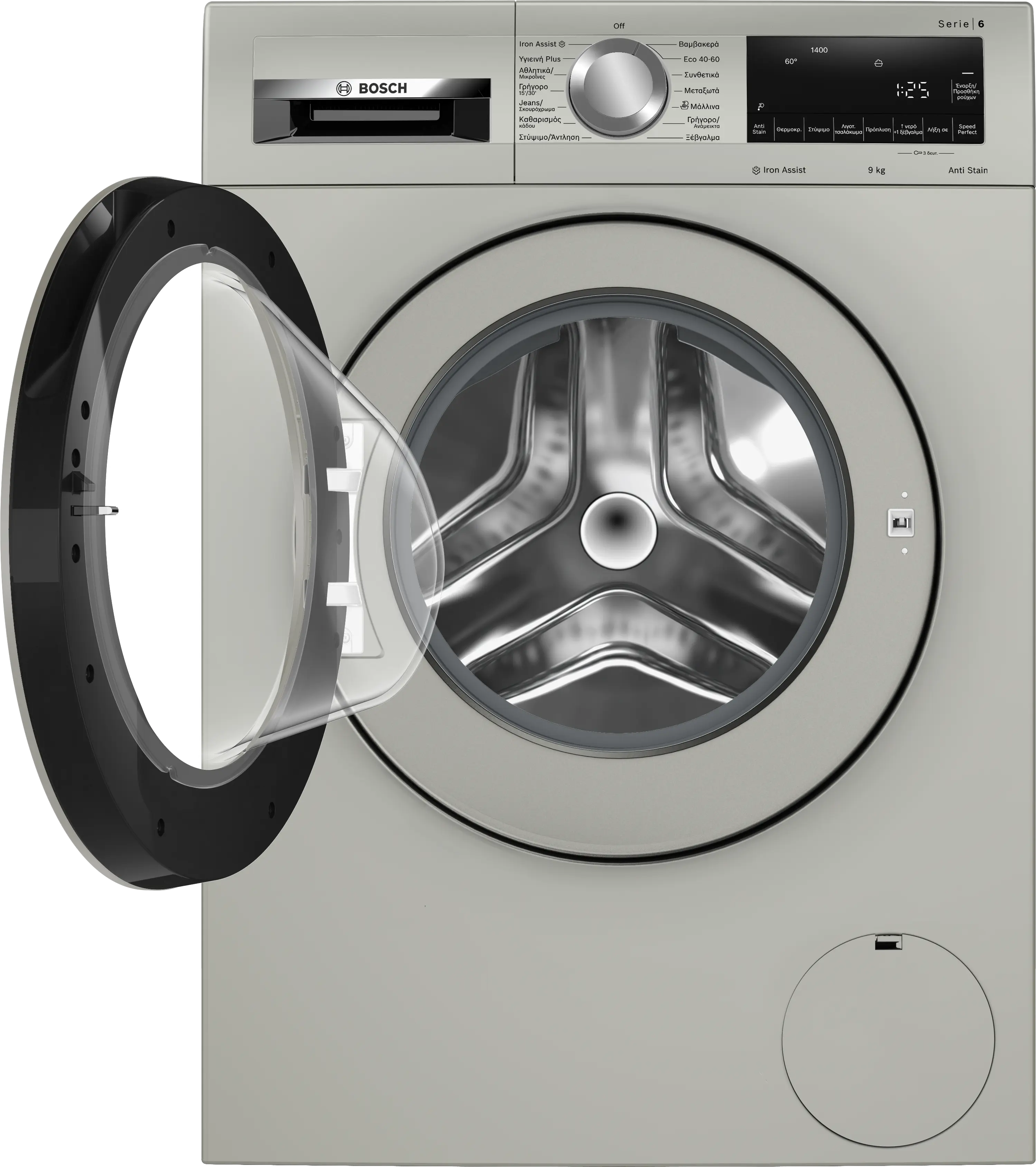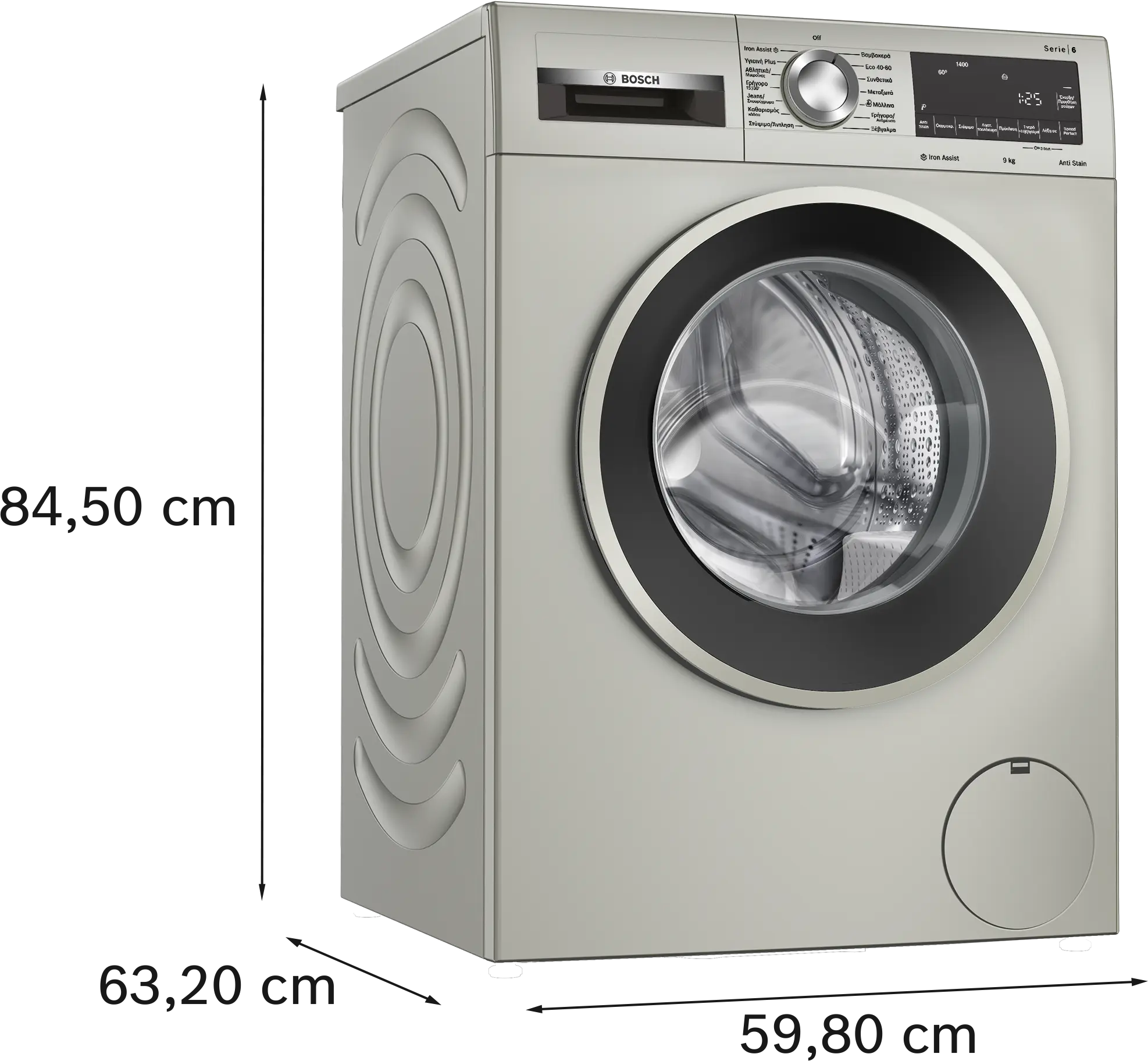 Σειρά 6 Πλυντήριο ρούχων εμπρόσθιας φόρτωσης 9 kg Μέγιστες 1400 στροφές/λεπτό, Silver InoxWGG244ZXGR