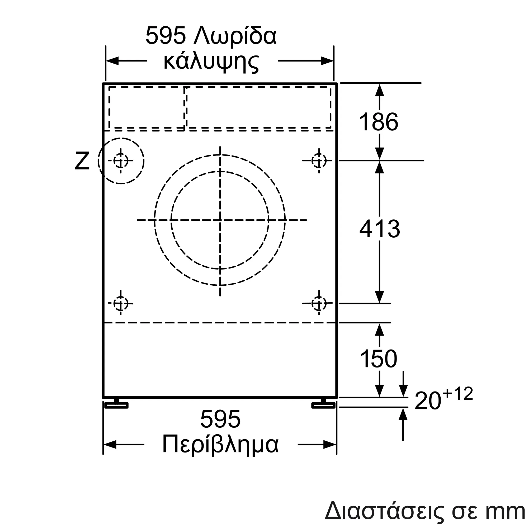 Διαστάσεις κορμού συσκευής, χωρίς πόρτα (ΥxΠxB)