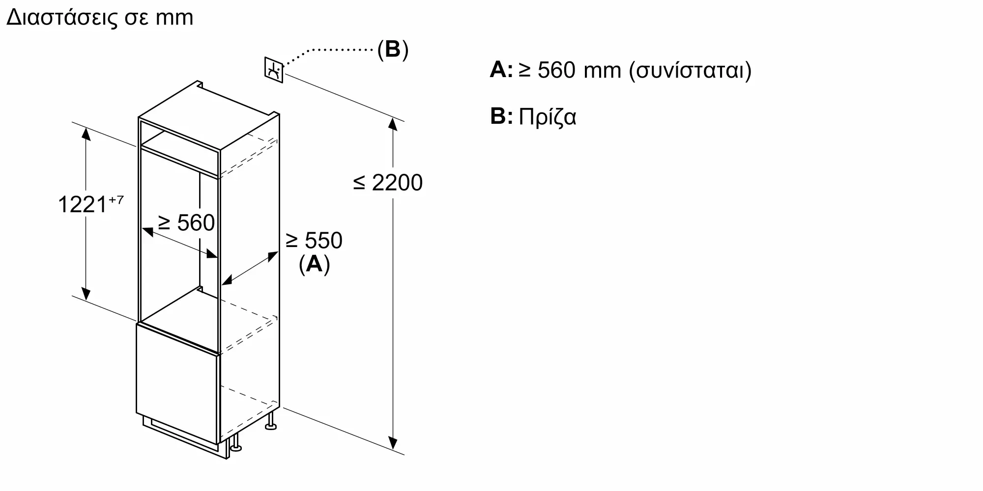 Διαστάσεις Εσωτερικής μονάδας: (ΥxΠxΒ)
