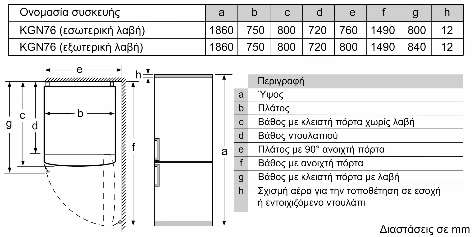 Διαστάσεις Εσωτερικής μονάδας: (ΥxΠxΒ)